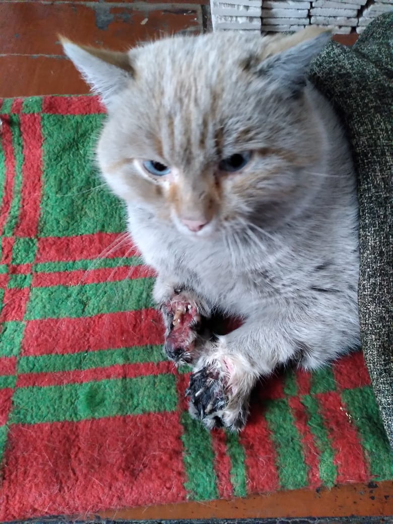 Котика обнаружила добрая женщина, когда в нем буквально едва теплилась жизнь. Он лежал на зимой тропинке и звал на помощь. Охрипшим голосом, обессиленный, он снова и снова пытался привлечь внимание прохожих. Не сдавался. И хоть был готов в любую минуту расстаться с девятой жизнью, он цеплялся за нее из последних сил.