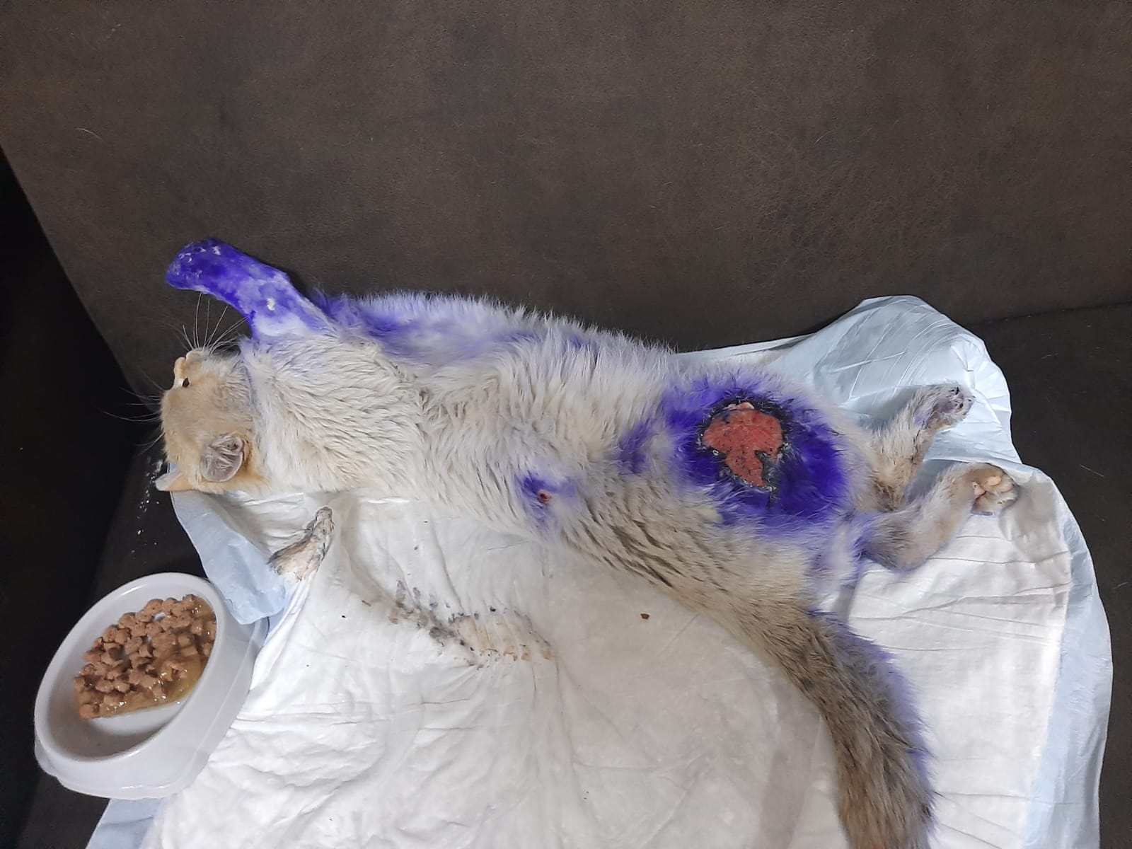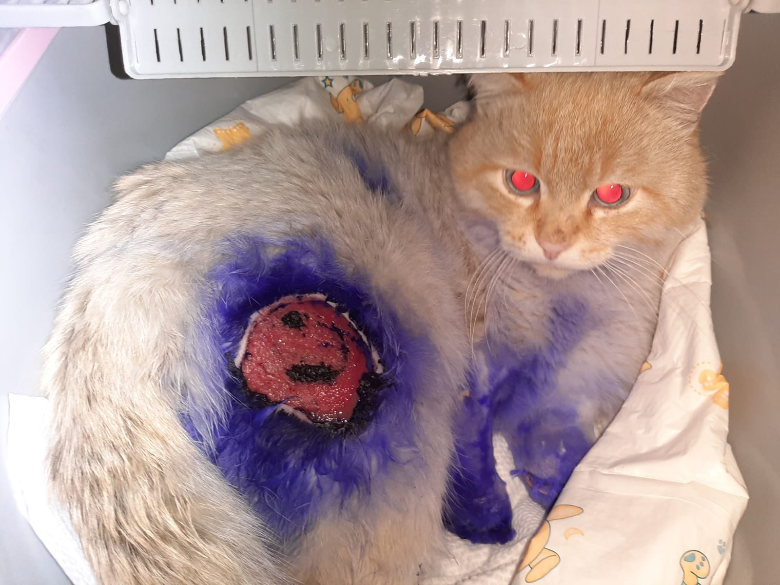 Он много плакал. И от боли, и от обиды. Не понимал, что произошло. Пытался встать и убежать. Когда уставал плакать, засыпал. Все эти дни и ночи мы были рядом. Помогали переворачиваться, кушать, ходить в туалет. Баюкали на руках. Обрабатывали раны и кололи лекарства. Шансы были 50\50. Но этот котик удивил всех.